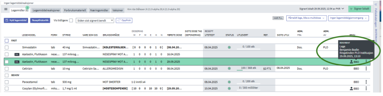 Visning av resept i LIB etter at den er sendt til Reseptformidleren