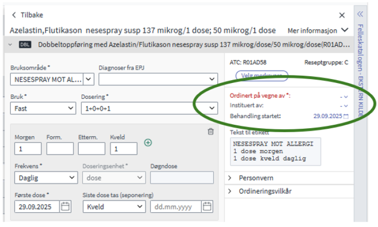 - Fyll inn reseptdetaljer på vanlig måte - signer/send