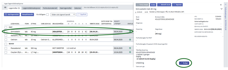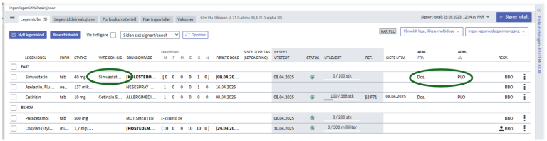 - Systemet beregner totalt antall doser som behøves: [antall per dag]*[behandlingslengde i dager]